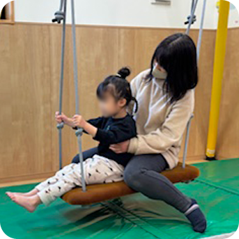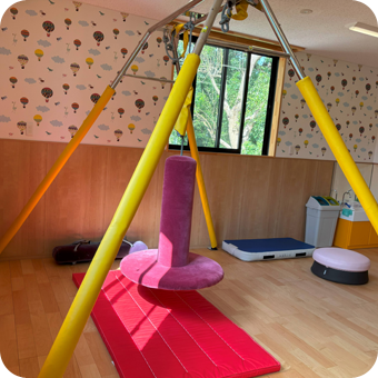 児童発達支援りあんでは、トランポリンやスイングなどの療育器具を活用しながら、感覚統合面にアプローチできる療育を行っていきます。