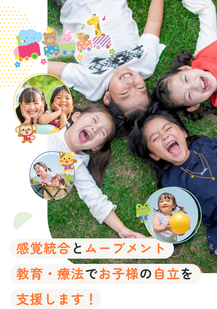 感覚統合とは、「生活の中で、さまざまな感覚器官を 通じ、絶えず身体に入ってくる複数の感覚(五感・固有 受容覚・前庭覚など)を正しく分類・整理し、取り入れる脳の機能」のことです。