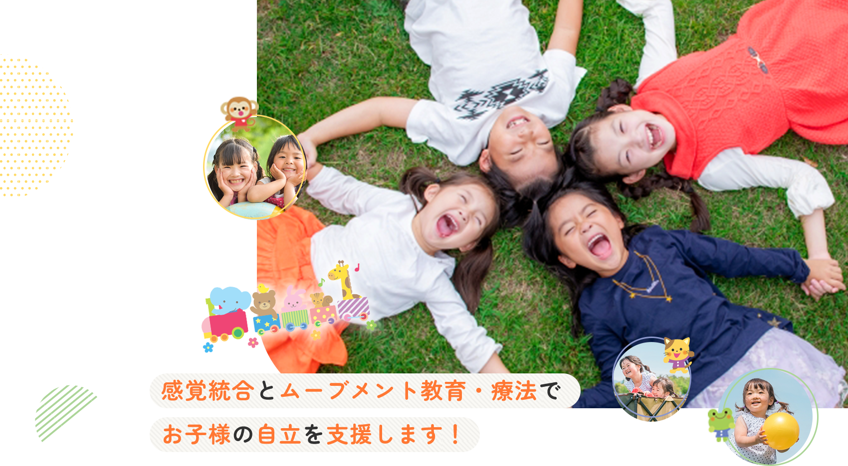 私たちは、お子さまの発達をサポートするため、専門スタッフが常駐し、個々のお子様に合った支援を提供しています。児童発達支援りあんでは、これまで社会福祉法人なつめの会が注力してきた感覚統合療法やムーブメント教育・療法を取り入れながら、独自の療育プログラムを考案しています。教室内には、お子さまの好奇心を引き出すための様々な教材や療育器具を準備しており、安心して成長できる環境を整えています。